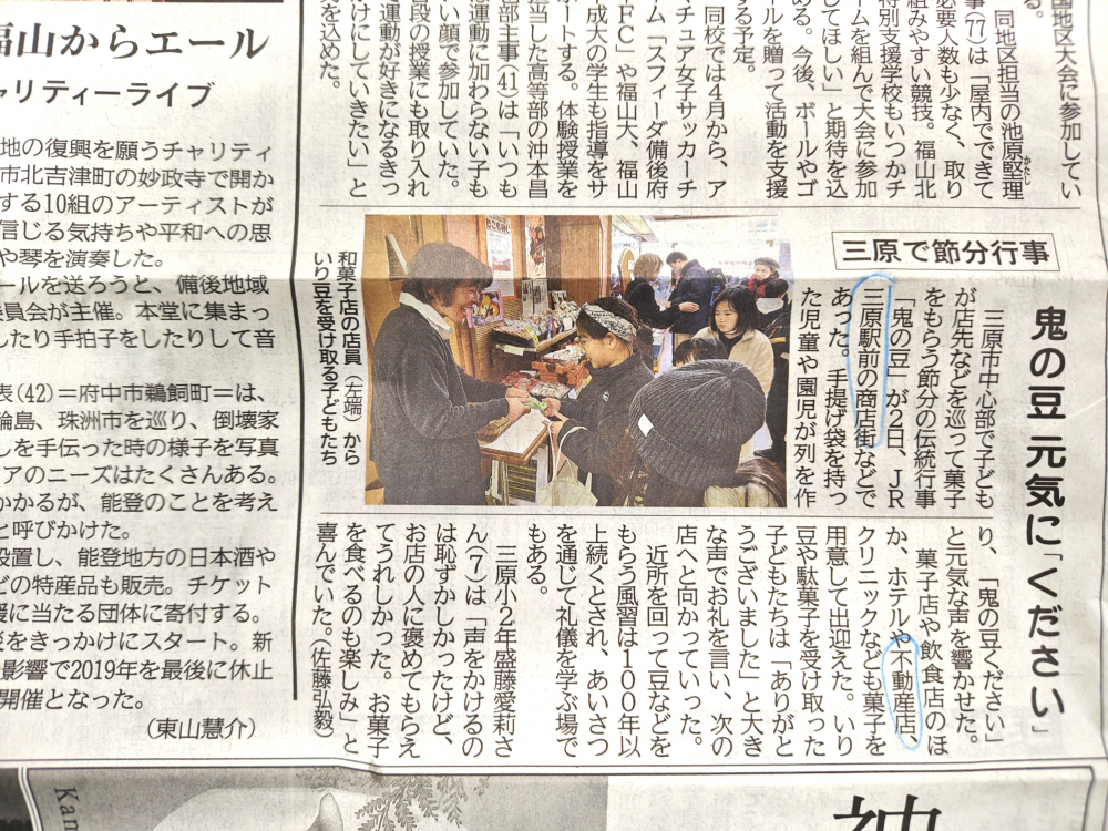 本日の朝刊に、三原駅前の・・・・不動産店・・と書いていただきました。